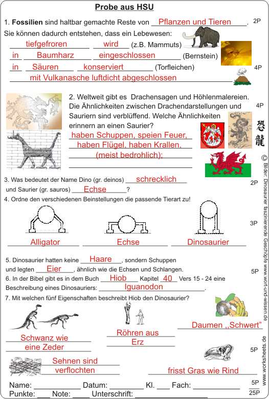 Eine Probe zu den vorhergehenden Arbeitsblättern mit Lösungsfolie