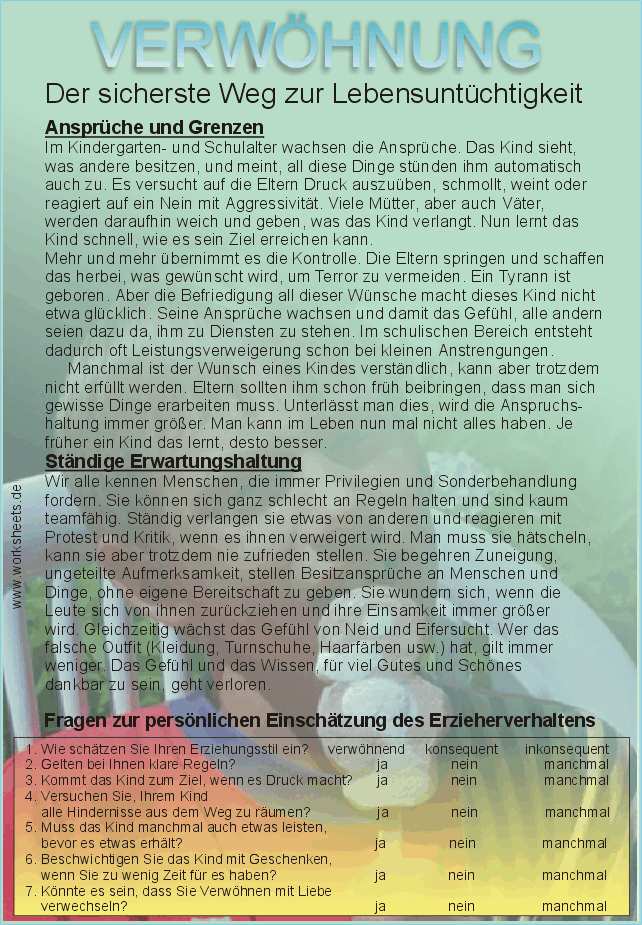 Eltern und Erziehung: Eine Internetseite mit Hilfen zur Erziehung der Kinder und Jugendlichen durch die Eltern. Die ersten Themen sind “Verwöhnung - der sicherste Weg zur Lebensuntüchtigkeit” und “Wie gehe ich mit Zeugnissen und Zeugnisnoten um?”.