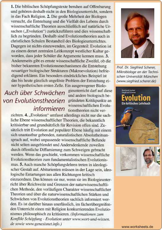 In den aktuellen Auseinandersetzungen um Evolutionstheorie, Kreationismus und „Intelligent Design“ wurde häufig die Befürchtung geäußert, Evolutionskritiker wollten die Evolutionstheorie aus dem Biologieunterricht entfernen oder Schöpfungsanschauungen mit juristischen Mitteln in den Naturkundeunterricht zwingen. Solche Bemühungen gibt es bedauerlicherweise im amerikanisch-australischen Raum. Als Mitautor eines evolutionskritischen Lehrbuches stelle ich meine Meinung zu diesen Fragen in den folgenden Thesen zusammen.