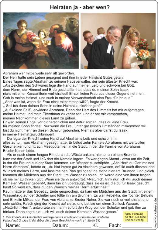 Sexualkunde: Heiraten ja - aber wen? In wie fern kann eine Geschichte aus dem Alten Testament ein Vorbild sein? Rebekka - eine Frau für Isaak