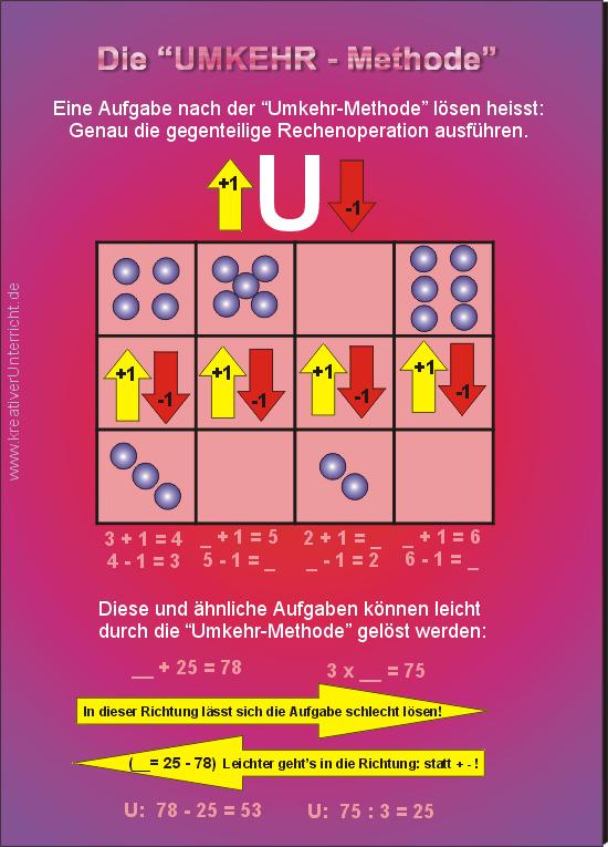 Eine Aufgabe nach der “Umkehr-Methode” lösen heisst: Genau die gegenteilige Rechenoperation ausführen. |