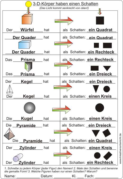 3D-Körper haben Schatten. Die meisten haben sogar zwei verschiedene Schatten.