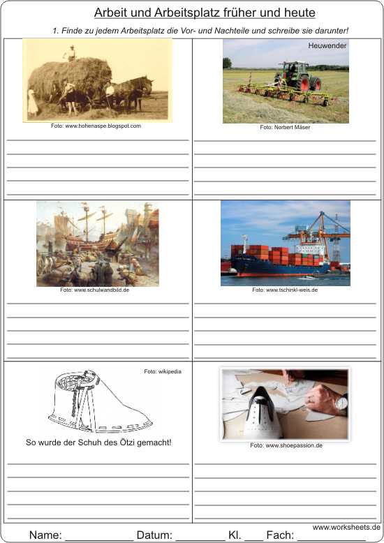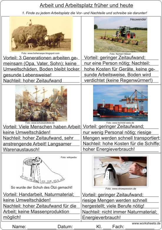 Arbeit und Arbeitsplatz füher und heute - Vor- und Nachteile herausfinden;