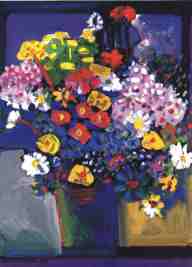 Der in Frankreich lebende Künstler hat Blumen ganz verschieden gemalt. Die Schüler sollten beide Bilder nachempfinden und ihre Meinung dazu äußern - “mehr wie echte Blumen der mehr wie geometrische Blumen mit Kreisen und Vierecken”?