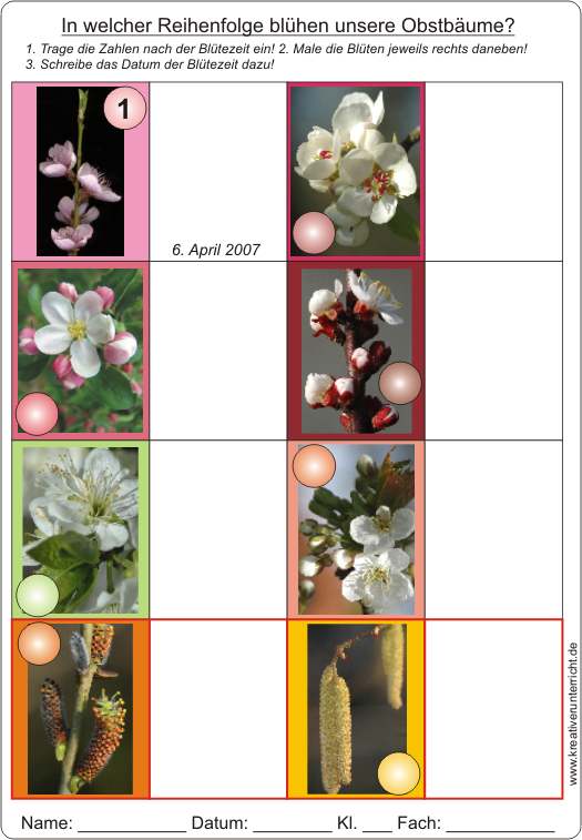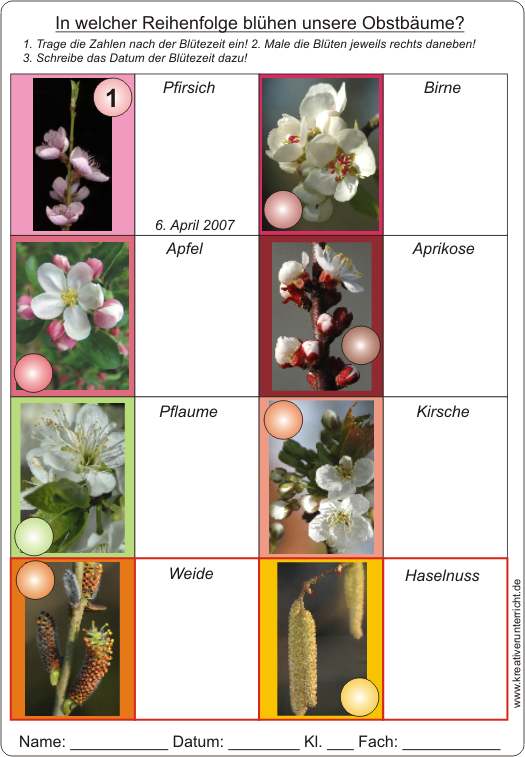 Die Obstbäume nach ihrer Blütezeit ordnen, Zusatz: die früh blühende Haselnuss und die Weide