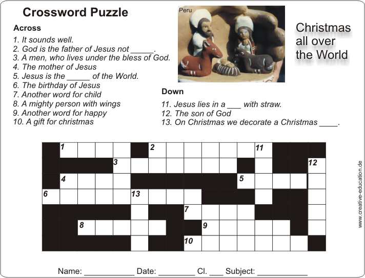 Christmas Crossword Puzzle - Christmas all over the World