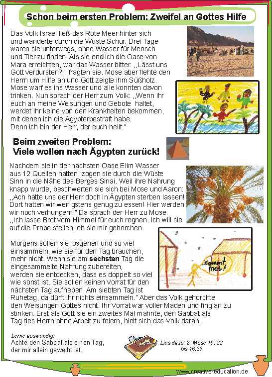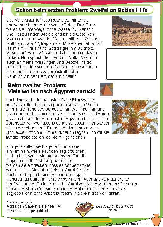 Schon beim ersten Problem in der Wüste: Zweifel an Gottes Hilfe - Arbeitsblatt und Lösungsfolie