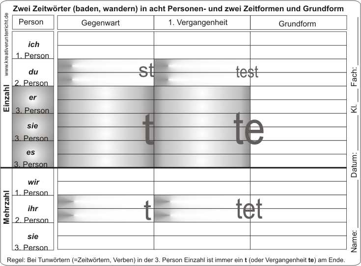 Rechtschreiben: Verben in der dritten Person Einzahl haben als Endbuchstaben ein “t”