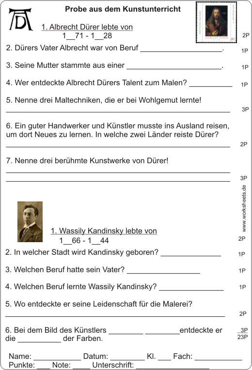 Probe aus dem Kunstunterricht: Albrecht Dürer und Wassily Kandinsky - eine Lebenslauf- und Malprobe