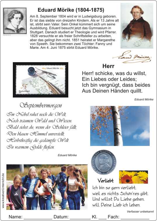 Eduard Mörike Gedichte: “Herr! schicke, was du willst” und “Septembermorgen” (kurzer Lebenslauf)