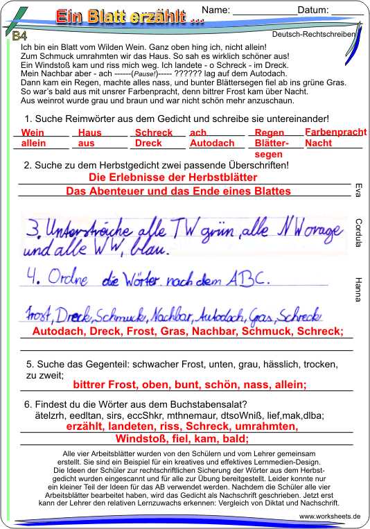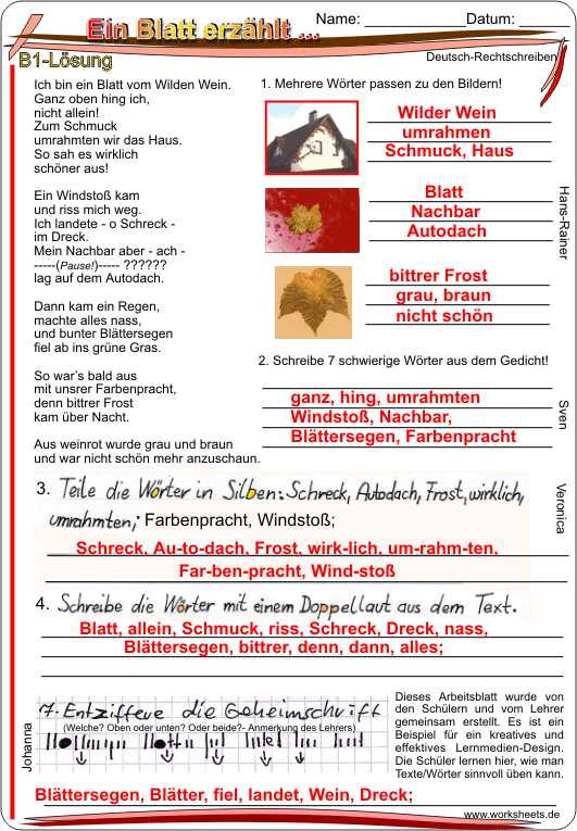 Ein Blatt erzählt - Gedicht zum Weiterdichten (Nachschrift)