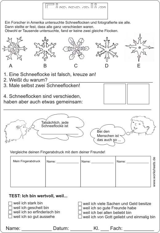 Einmalig und wertvoll - Mensch und Schneeflocke - Selbst die unwichtigsten Details in der Natur/Schöpfung sind mit Liebe ausgedacht und gestaltet. Ich bin wertvoll, weil Gott mich liebt, einmalig wertvoll.