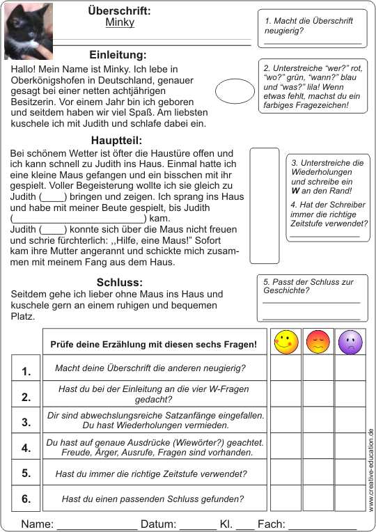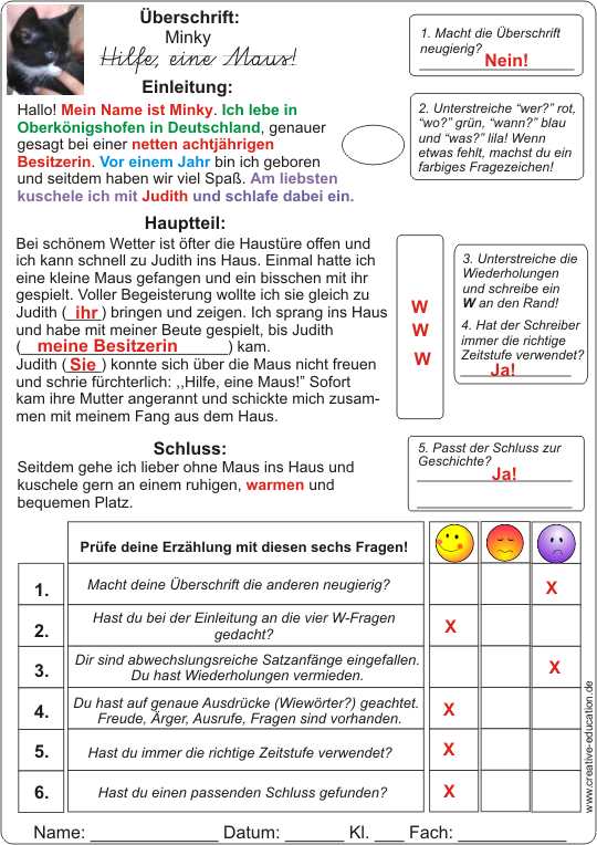 Schüler lernen die Kriterien der Bewertung von Erzählungen kennen. Sie werden im Klassengespräch erarbeitet, können aber auch selbsständig gefunden werden.