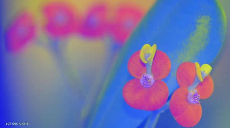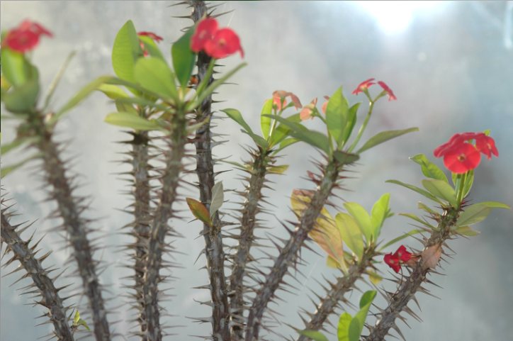 Mein Christusdorn blüht das ganze Jahr über und hat seit Jahren noch nie aufgehört zu blühen. Manchmal wächst aus einer Blüte eine zweite Blüte über der ersten Blüte. Siehe auch letztes Bild. Da beginnt sich eine zweite Blüte zu entwickeln.