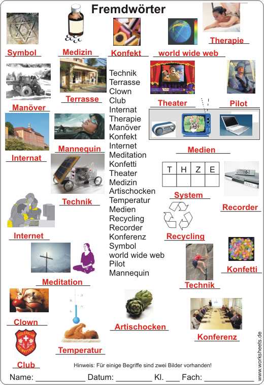 Fremdwörter kennen und erkennen - Wort und Bild zuordnen
