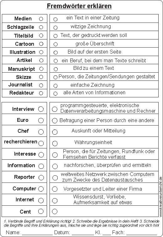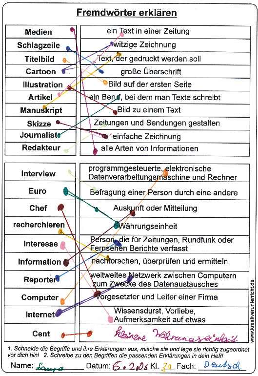 Fremdwörter erklären Zuordnen Puzzle