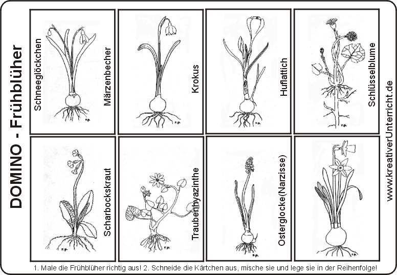 Hier ein Beispiel für die “Tausch-Methode” von LERNMEDIEN-DESIGN: Einmal muss man von den Speicherorganen auf die restliche Pflanze schließen und dann umgekehrt. Hier: Welche Frühlingsblumen gehören zu den Speicherorganen? Und: Warum können Frühblüher so früh blühen? Ergänze die Speicherorgane!