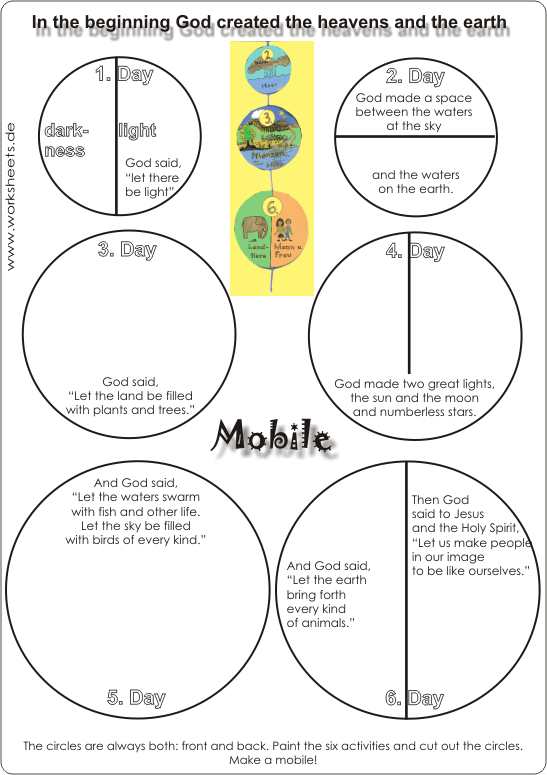 OIn the beginning God created the heavens and the earth. The six days of creation as a mobile.
