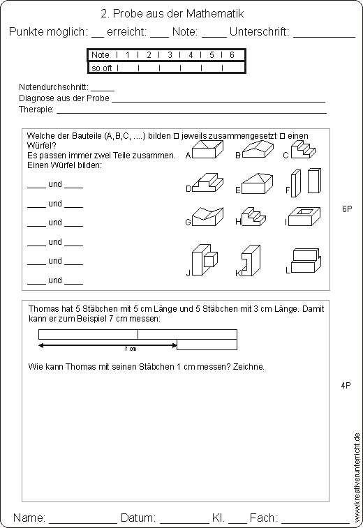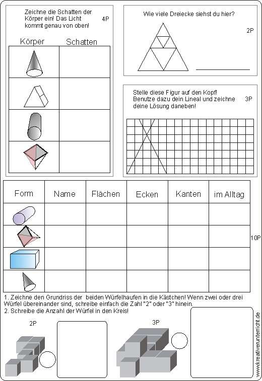 Geometrie Probe Klasse 3: Längen, Flächen, Körper und deren Eigenschaften