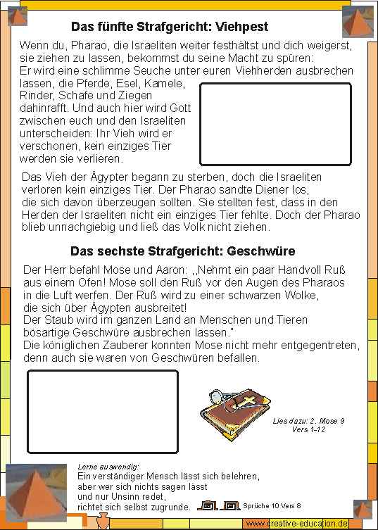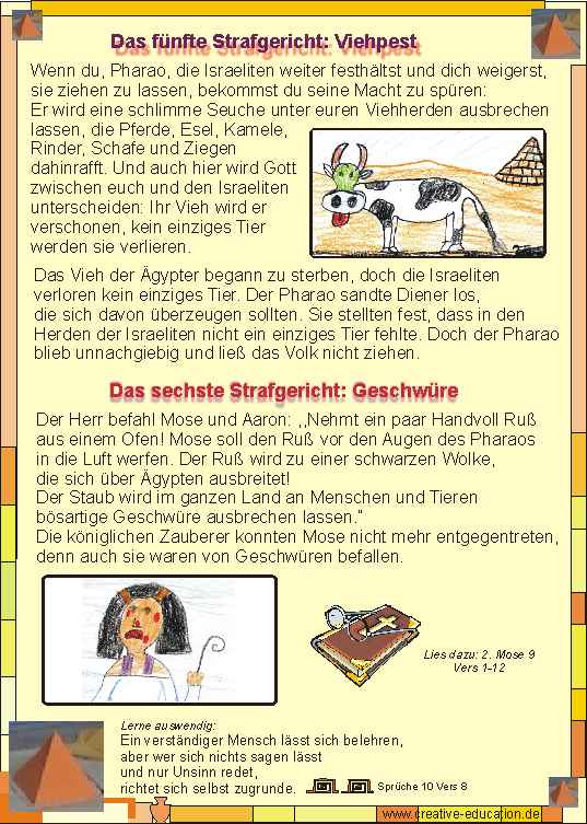 Gottes Strafen 5 und 6 über Ägypten. Der Pharao lässt das Volk Israel nicht ziehen. - Arbeitsblatt und Lösungsfolie