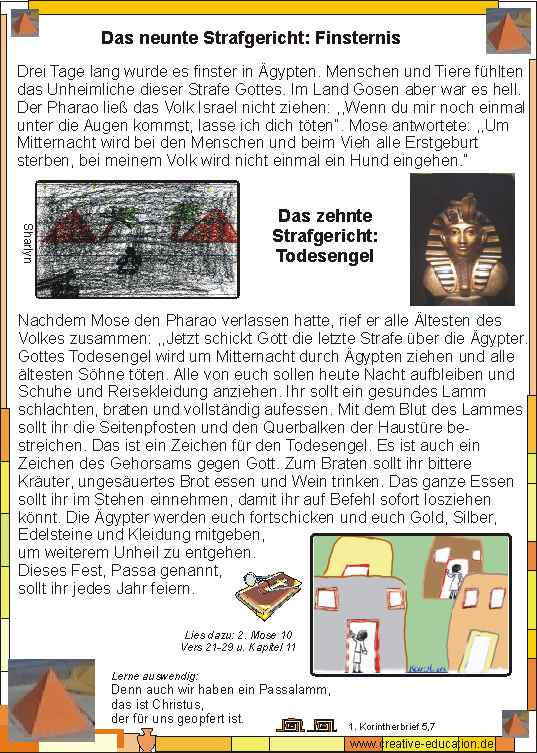 Gottes Strafen 9 und 10 über Ägypten. Der Pharao lässt das Volk Israel nicht ziehen. - Arbeitsblatt und Lösungsfolie