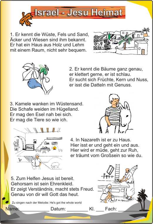 Israel - Jesu Heimat: Ein Lied zum Kennenlernen der Umwelt Jesu: Die Kindheit Jesu, sein Tagesablauf, die Landwirtschaft, das Klima und die Fischerei , die jüdischen Feste und die Römer im Lande.