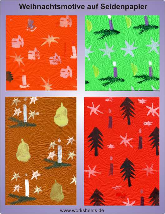 Kartoffelstempeldruck - Weihnachtsmotive auf Seidenpapier