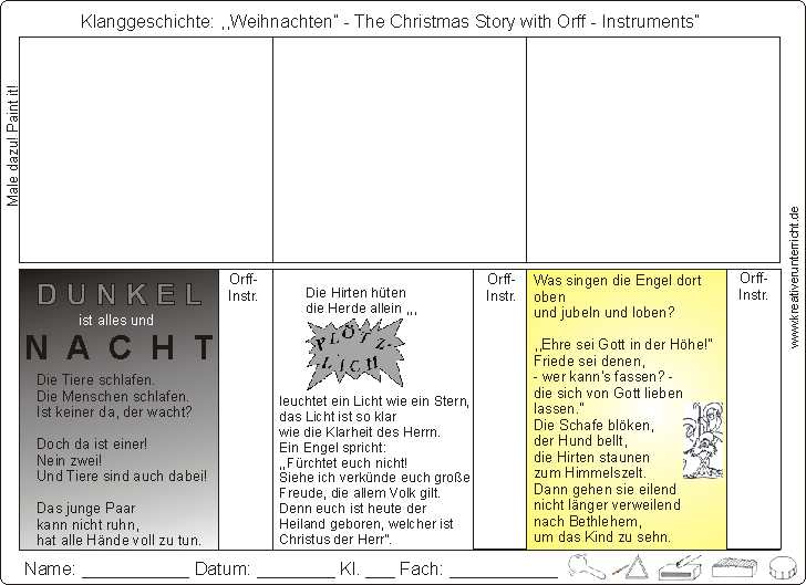 Orff - Singspiel: Weihnachten - The Christmas Story with Orff-Instruments -Arbeitsblatt-Worksheet