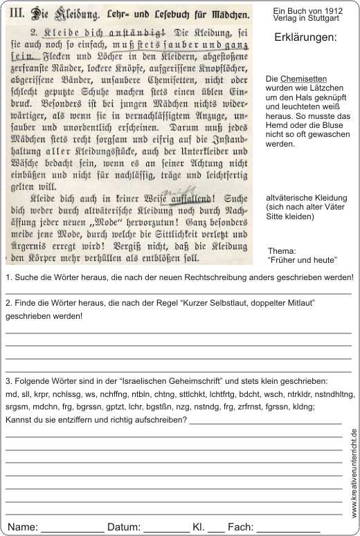 Kleidung von 1912 -Text aus dem Lehr- und Lesebuch für Mädchen