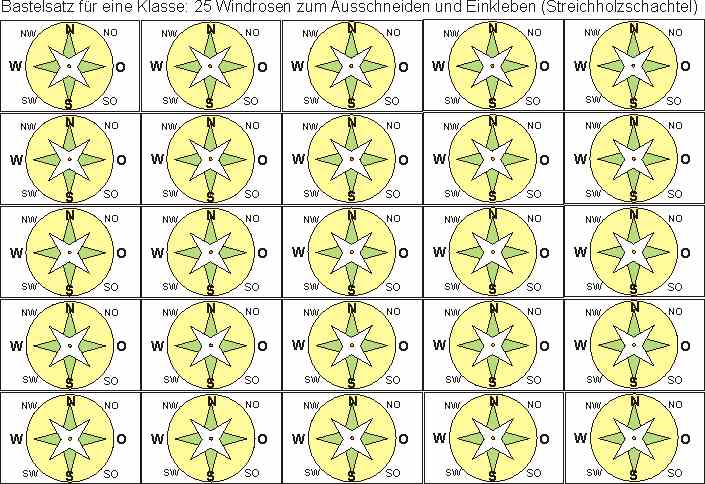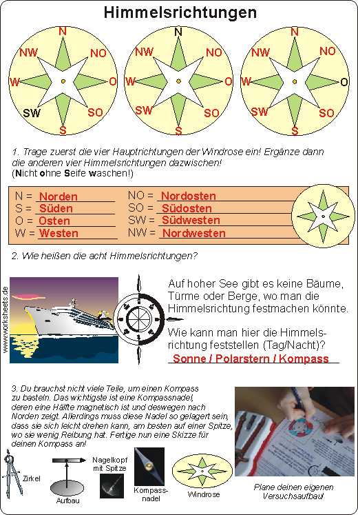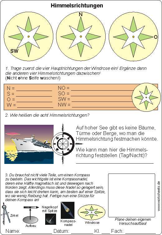 Wir basteln einen Kompass und bestimmen die Himmelsrichtungen: Norden, Osten, Süden und Westen.