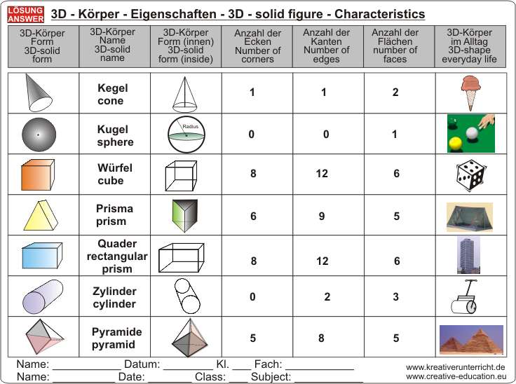 3D - Körper - Eigenschaften - 3D - solid figure - Characteristics