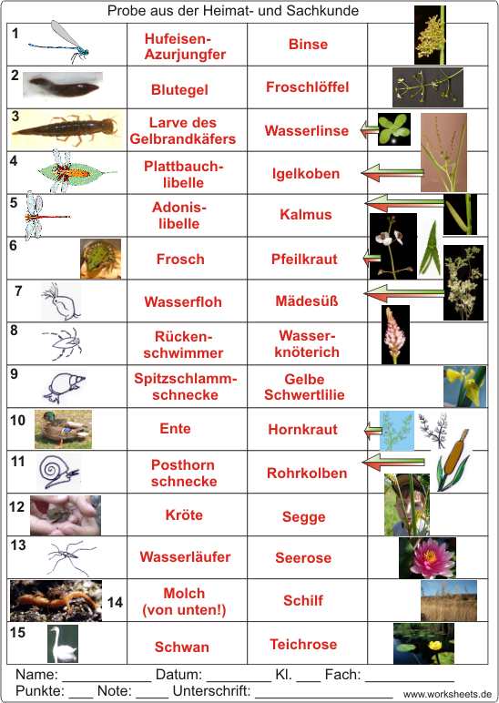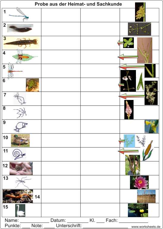 Lebensraum Teich mit Tieren und Pflanzen - Probe