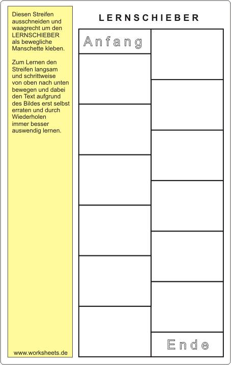 Verschiedene Arten von Lernschiebern können in fast allen Fächern eingesetzt werden. Nicht erst der Gebrauch durch mehrmaliges Wiederholen erbringt den Lernerfolg, sondern schon bei der Anfertigung und der dabei entstehenden Kommunikation wird der überwiegende Teil des Lernprozesses erworben.