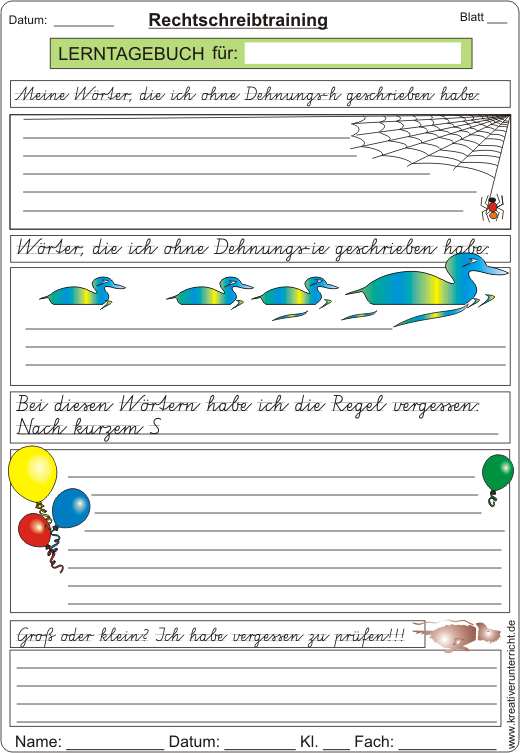 Rechtschreibtraining mit dem Lerntagebuch in Vereifachter Ausgangsschrift