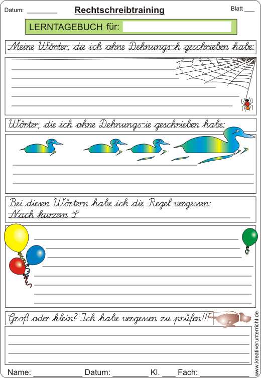 Rechtschreibtraining mit dem Lerntagebuch in Lateinischer Ausgangsschrift (VA und Lösungsfolie siehe unten!)