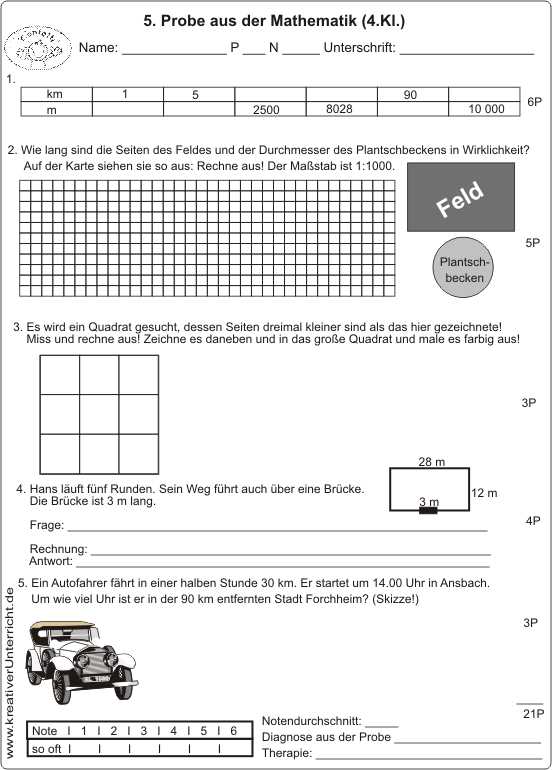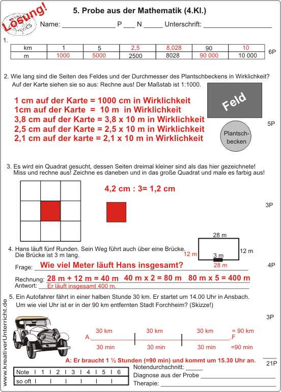 5. Probe aus der Mathematik Klasse 4 Arbeitsblatt und Lösungsfolie