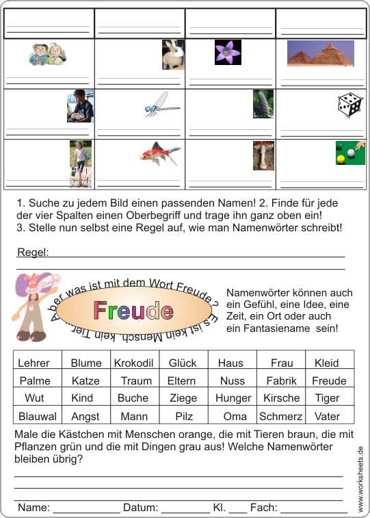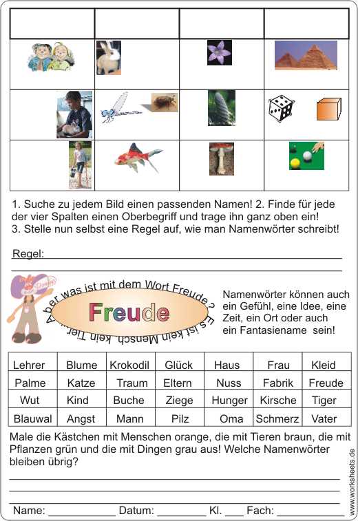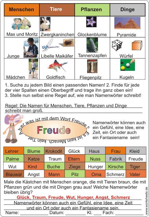 Namenwörter speziell für die 3. Klasse
