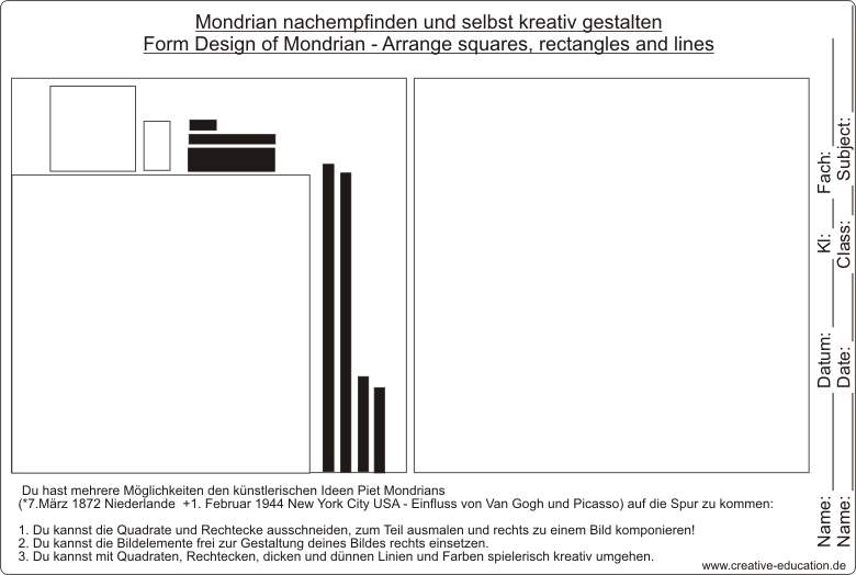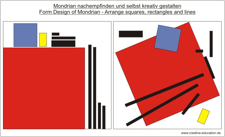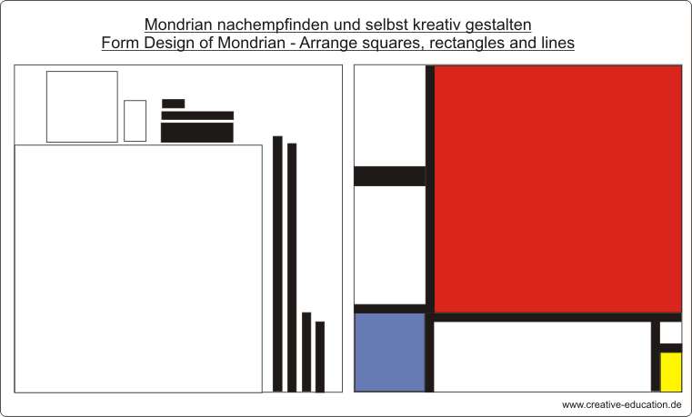 Mondrian nachempfinden und selbst kreativ gestalten - Form Design of Mondrian - Arrange squares, rectangles and lines