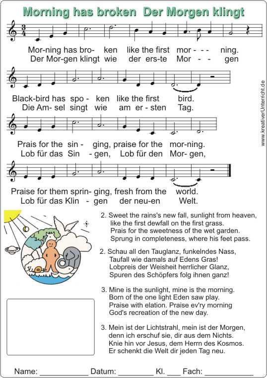 Morning has broken like the first morning - A wonderfull song with a sheet of music for flutes - Der Morgen klingt wie der erste Morgen - Ein wunderschönes Morgenlied mit Noten für die Flötenspieler.