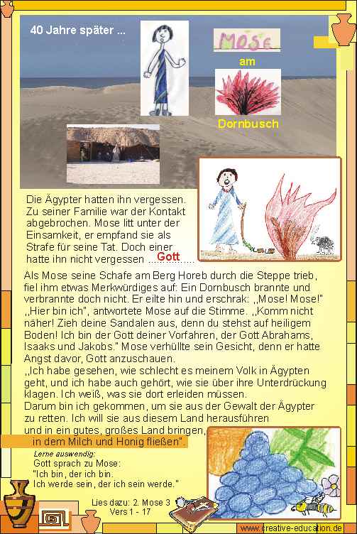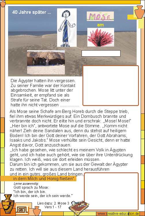 Mose am brennenden Dornbusch 40 Jahre nach der Flucht aus Ägypten - Arbeitsblatt und Lösungsfolie