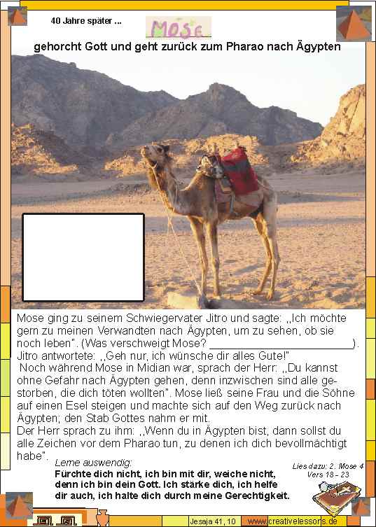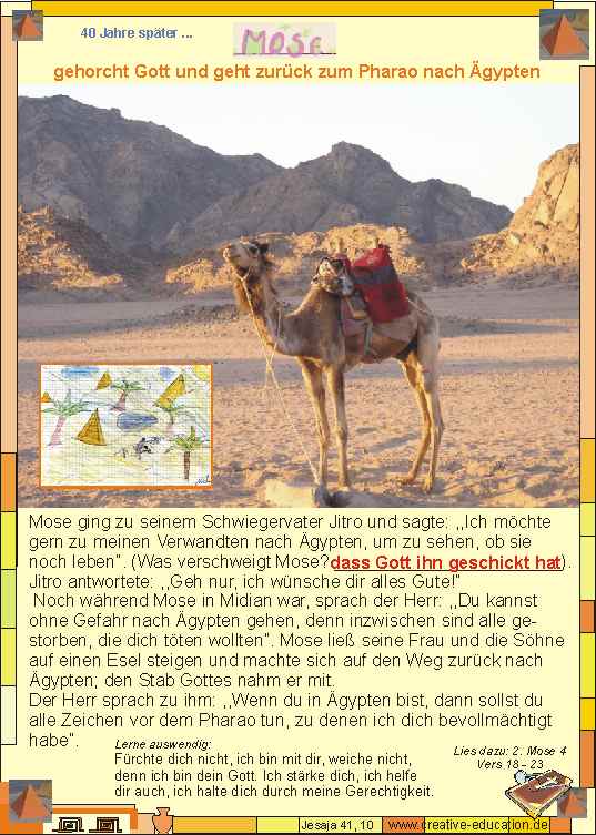 Mose gehorcht Gott und geht zurück nach Ägypten - Arbeitsblatt und Lösungsfolie