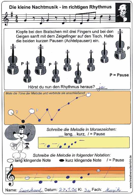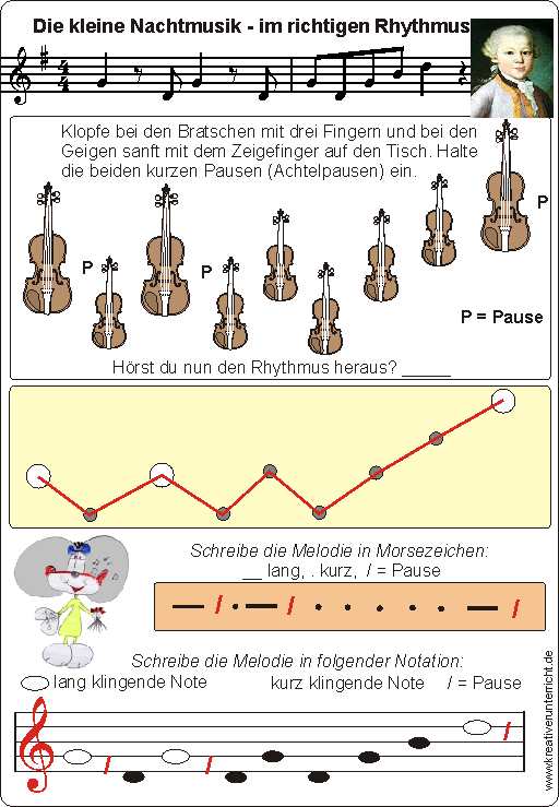 Mozart for Kids - Die kleine Nachtmusik mit Rhythmus - Rhythm - Erkennen der Struktur des Rhythmuses nachempfinden des Rhythmuses und kennenlernen einfacher und anschaulicher Schreibweisen.