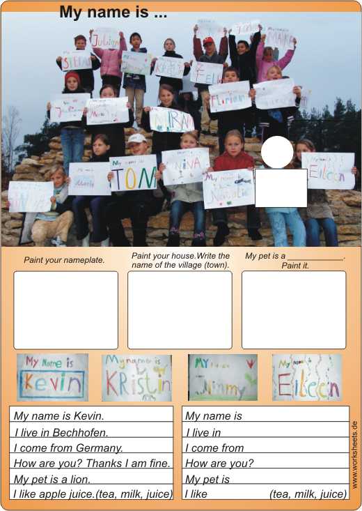 Conversation: My name is ... I come from ...Use it as an Activity Worksheet: Take a photo at the schoolyard