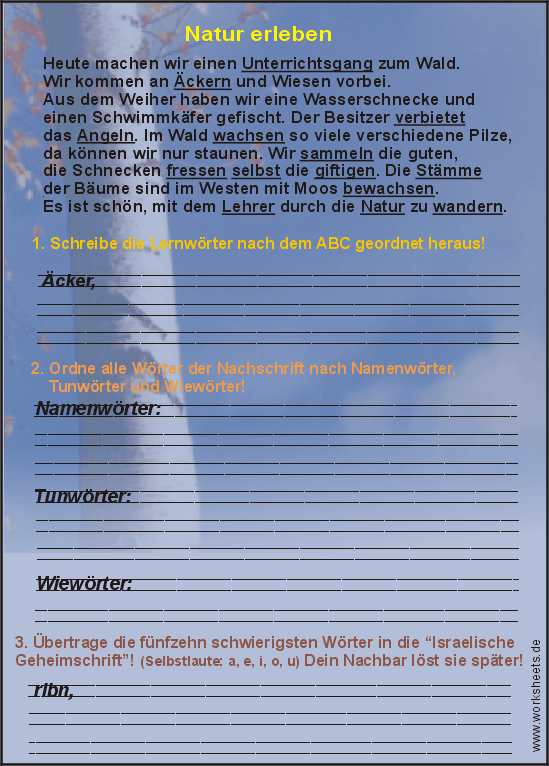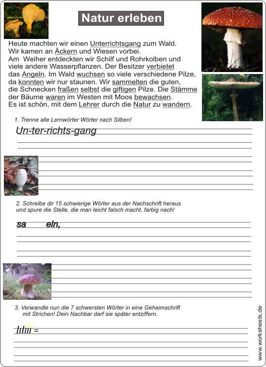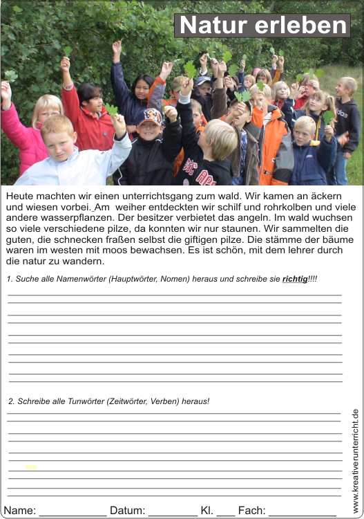 Die Nachschrift heißt: “Natur erleben”. Der Text ist nicht frei erfunden, die Sätze sind vielmehr ein Konglomerat aus den Erlebnissen beim Unterrichtsgang zum Wald.