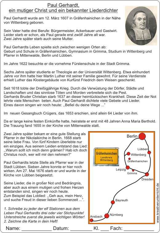 Paul Gerhardt zum 400. Geburtstag: Ein mutiger Christ und ein bekannter Liederdichter,geb. 1607, gest. 1676