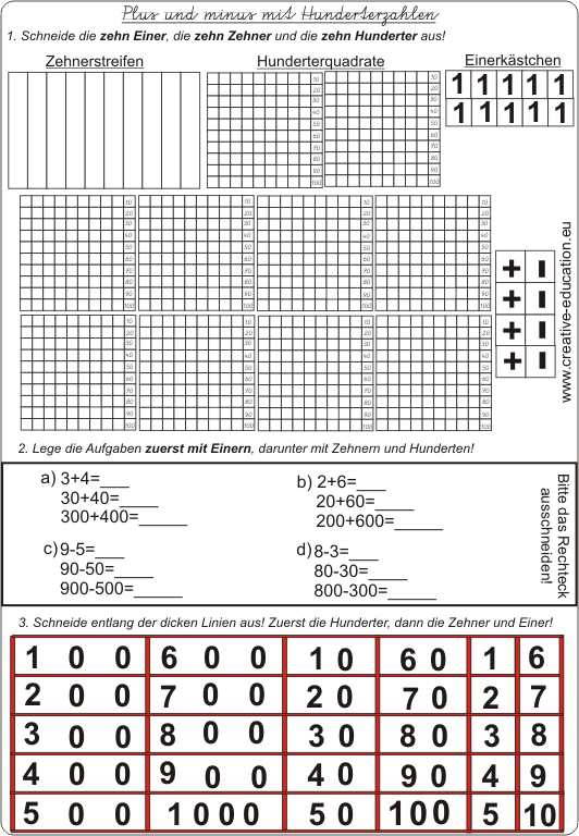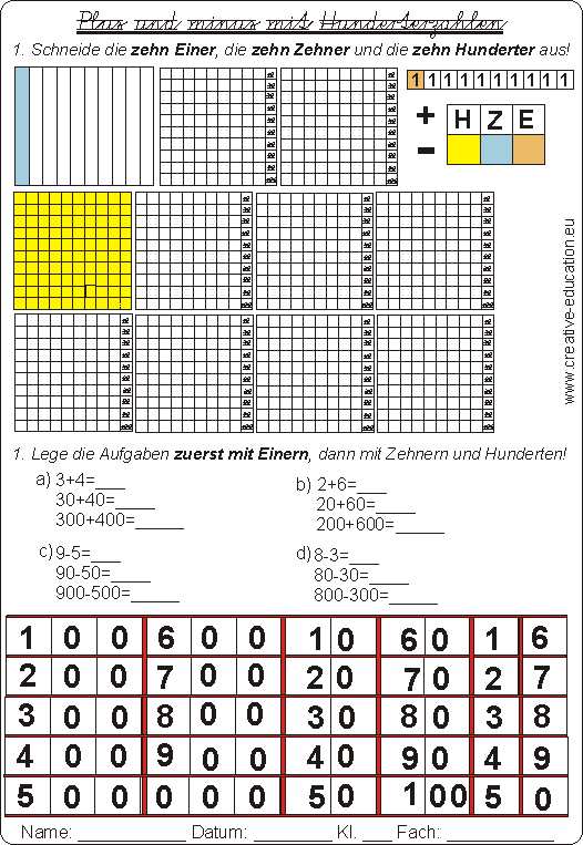 Plus und minus mit Hunderterzahlen - Analogie mit Einern, Zehnern und Hundertern vom handelden Umgang zur kognitiven Struktur im Gehirn.