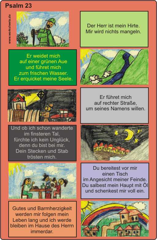 Ein Memory (Puzzle) für den Psalm 23 - hier schon vorgefertigt zum Ausschneiden!