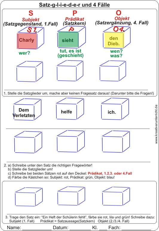 Sprachlehre - Satzglieder (Subjekt,Prädikat, Objekt) mit den 4 Fällen