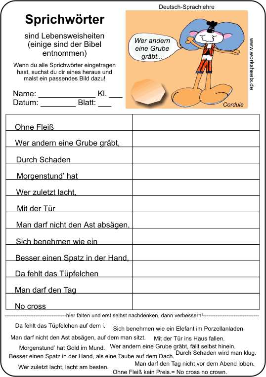 Sprachlehre - Sprichwörter Arbeitsblatt
