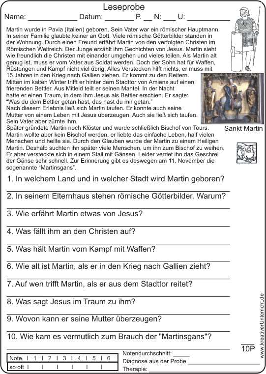 Die Geschichte von St. Martin und Fragen zum Text - Leseprobe